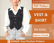 Vest & Shirt Sewing Pattern | Sewing Pattern for Women | Sewing Patterns | Vest Pattern | Shirt Pattern | Sewing Patterns, Waistcoat Pattern
